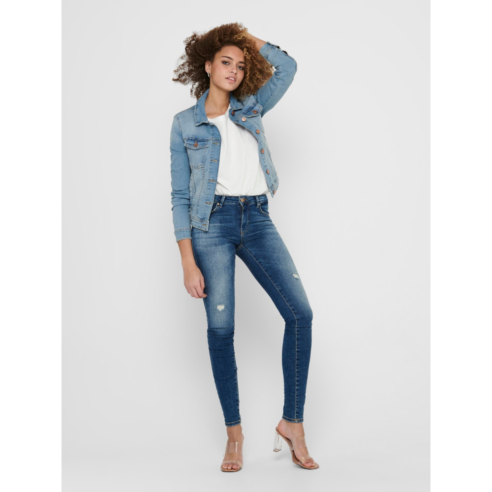 Džínová bunda v jemně sepraném vzhledu se zapínáním na knoflíky.