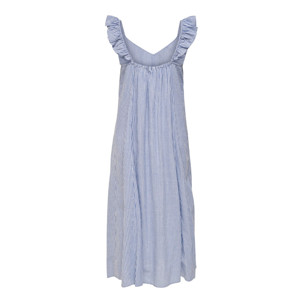Dámské šaty bez rukávů s volánovým výstřihem.